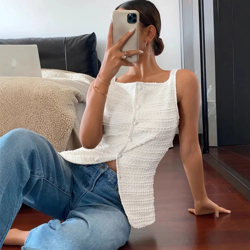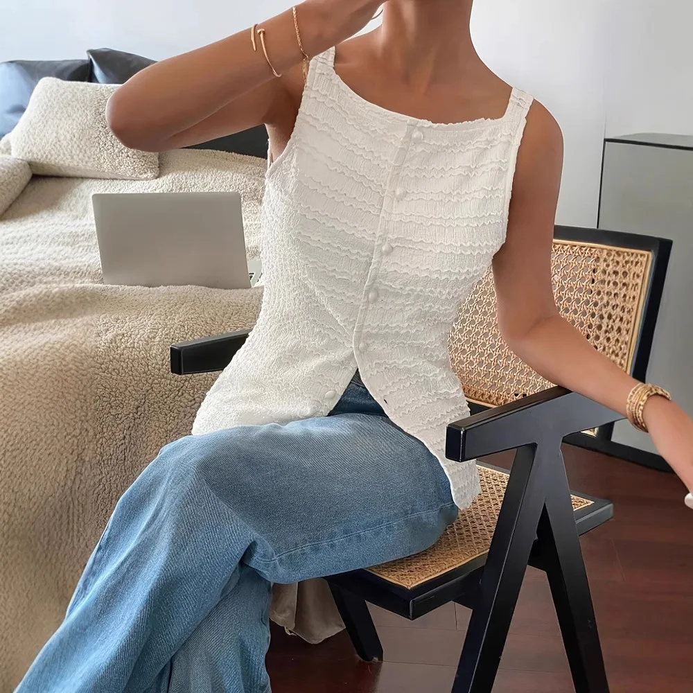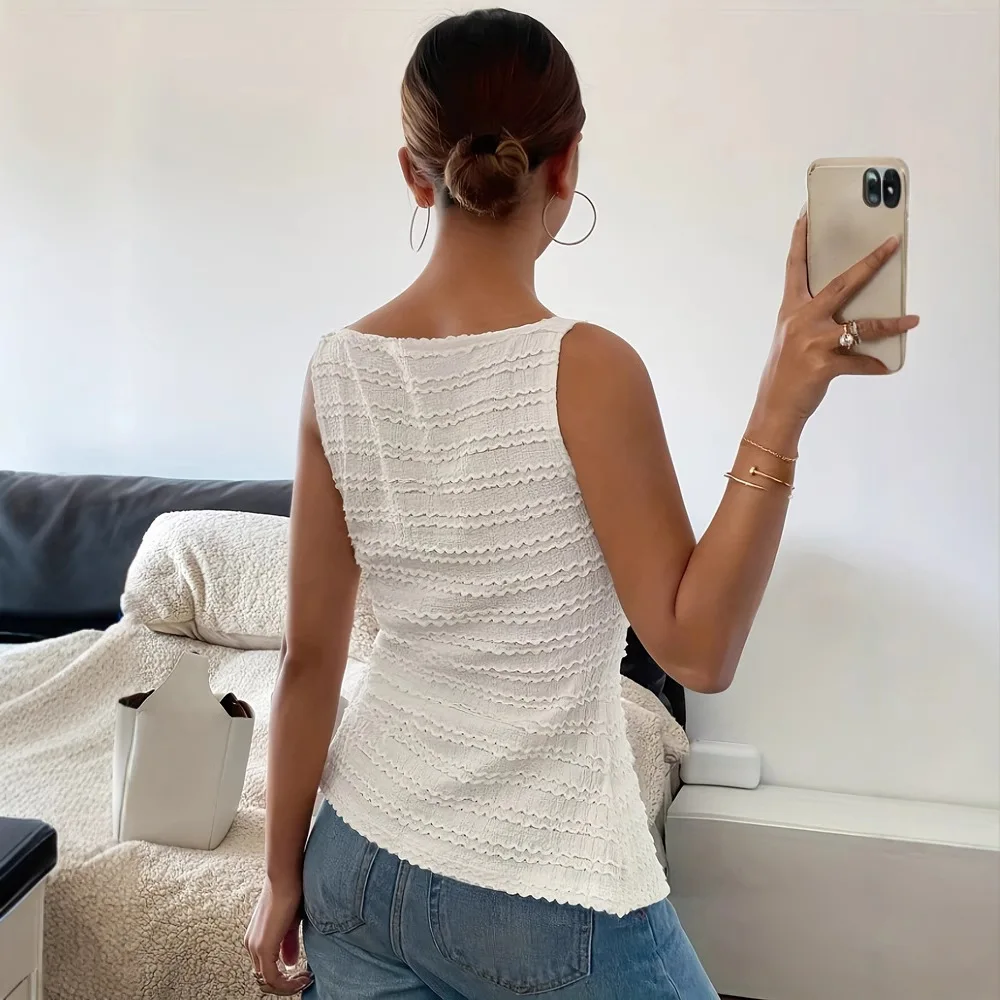 Sexy Sleeveless Communte Top: A-Line Beauty French Style T-Shirt