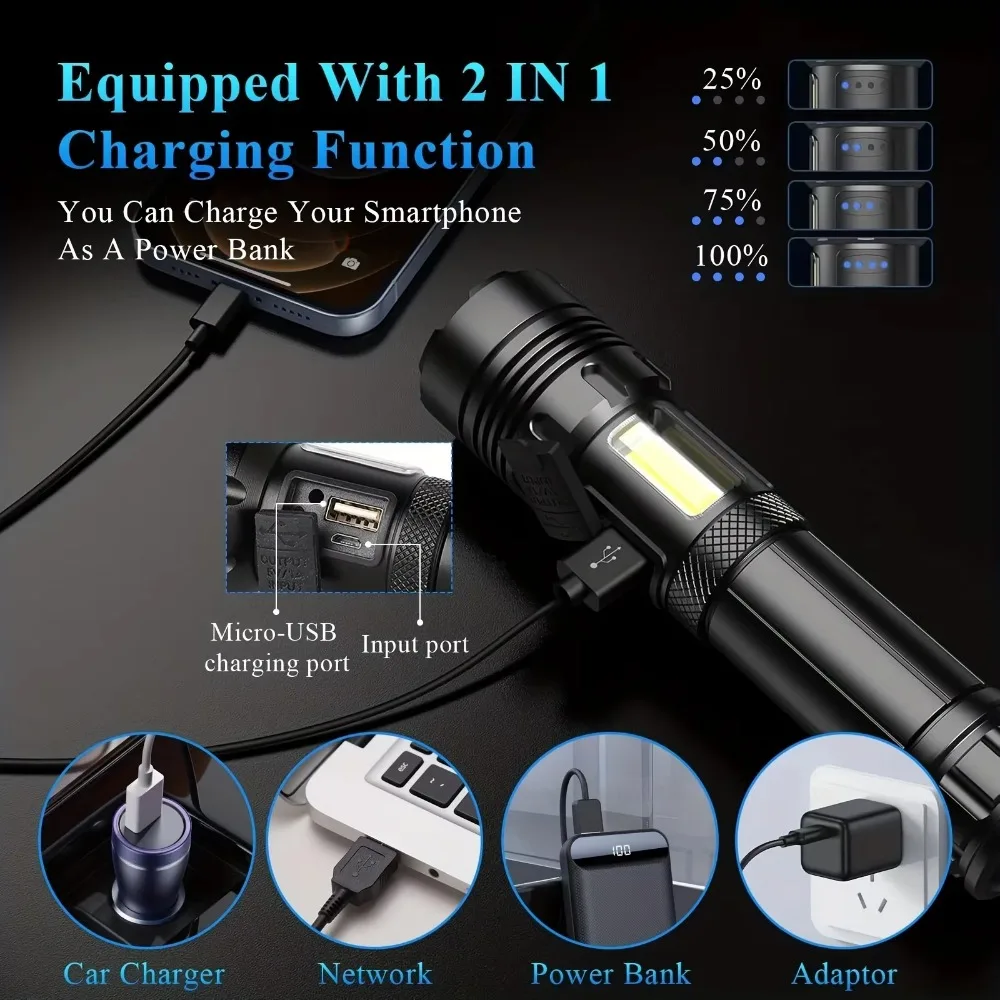Ultra-Powerful Brightness – Illuminate your path with this flash light boasting 90000 lumens of brightness, effortlessly illuminates an entire room making it the perfect super bright flashlight for everyday use.