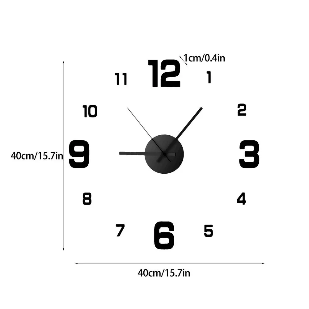 Product Size: Diameter 40 cm/15.75 inches, thickness about 3 mm/0.12 inches; hour hand about 75 mm/2.95 inches, minute hand about 97 mm/3.82 inches, second hand about 97 mm/3.82 inches, dial about 80 mm/3.15 inches