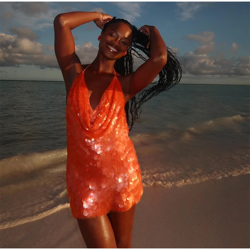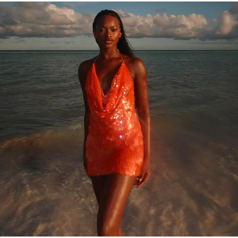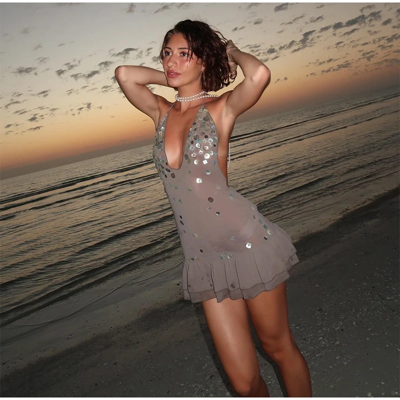 1.Eye – catching Sequin Embellishments: The dress is adorned with numerous sequins, which catch and reflect light, creating a dazzling effect. This makes it perfect for evening events or parties where you want to stand out.