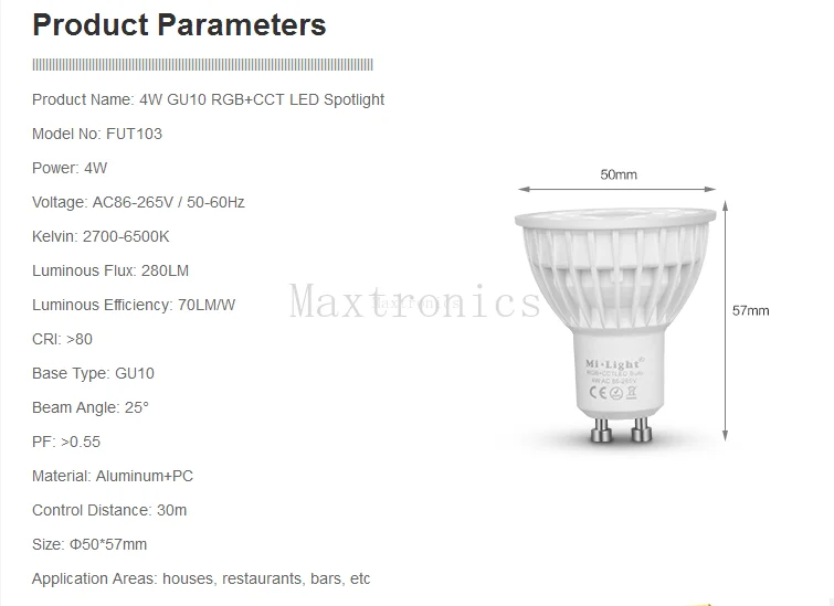 Product Name: 6W GU10 RGB+CCT LED Spotlight