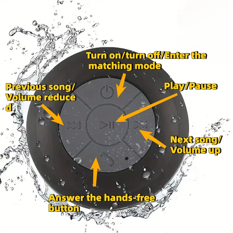 • Suction Cup Base :The speaker comes with a suction cup base, providing a secure and stable platform for it to sit on, preventing it from sliding off during use.