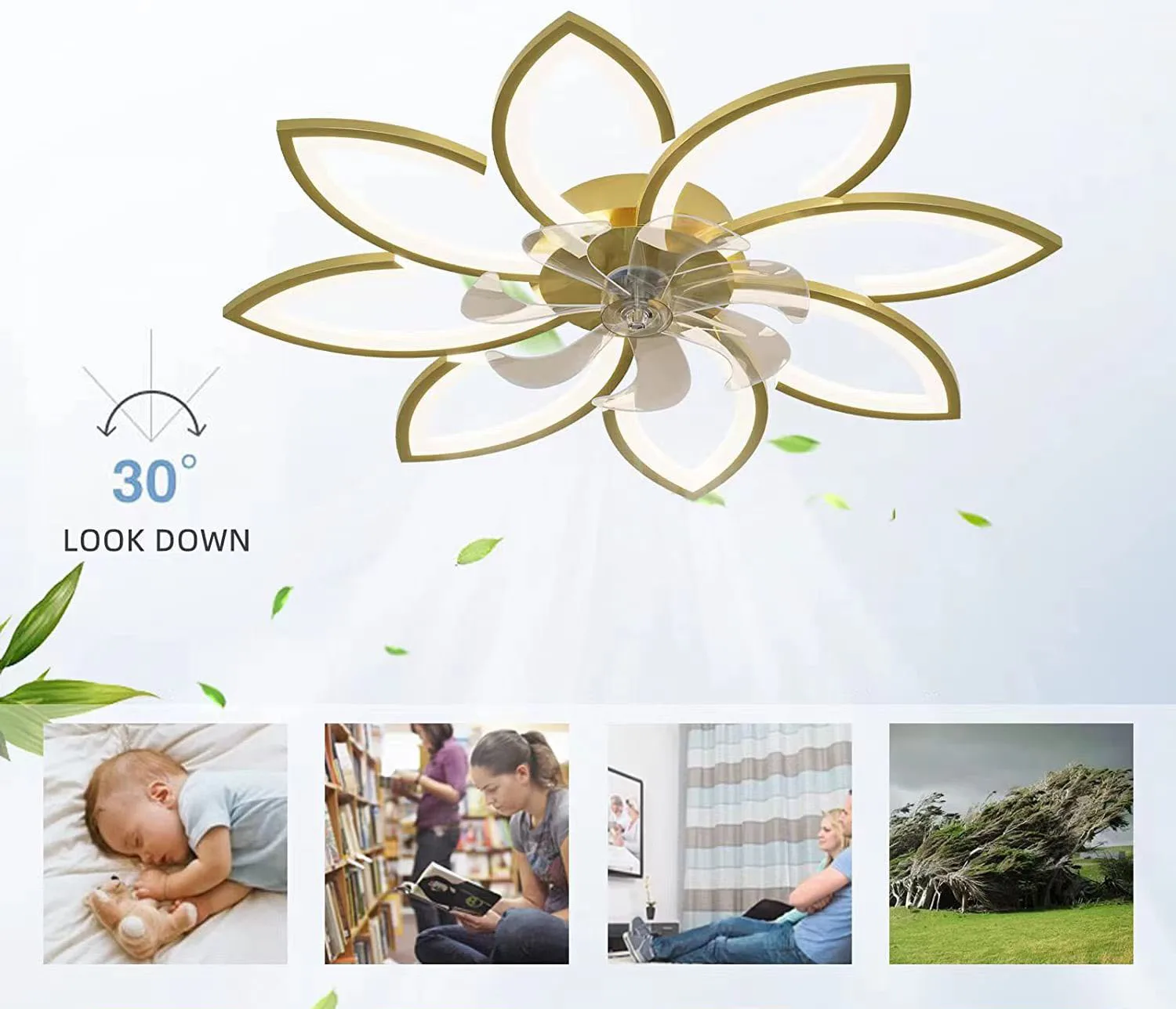 Petals LED Ceiling Lamp Ceiling Fans With Light Bedroom Dining Table Fan Lamp Ventilator Remote Control 110v 220V Black Light Fixture