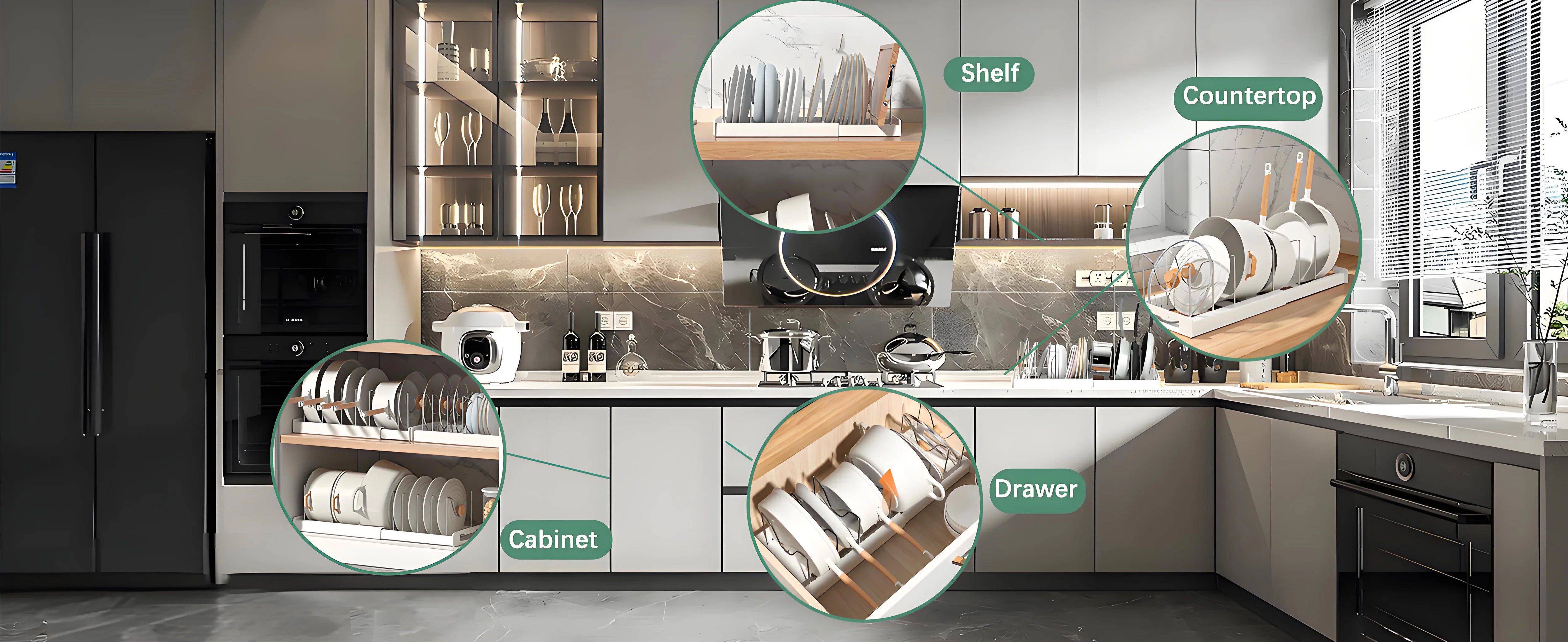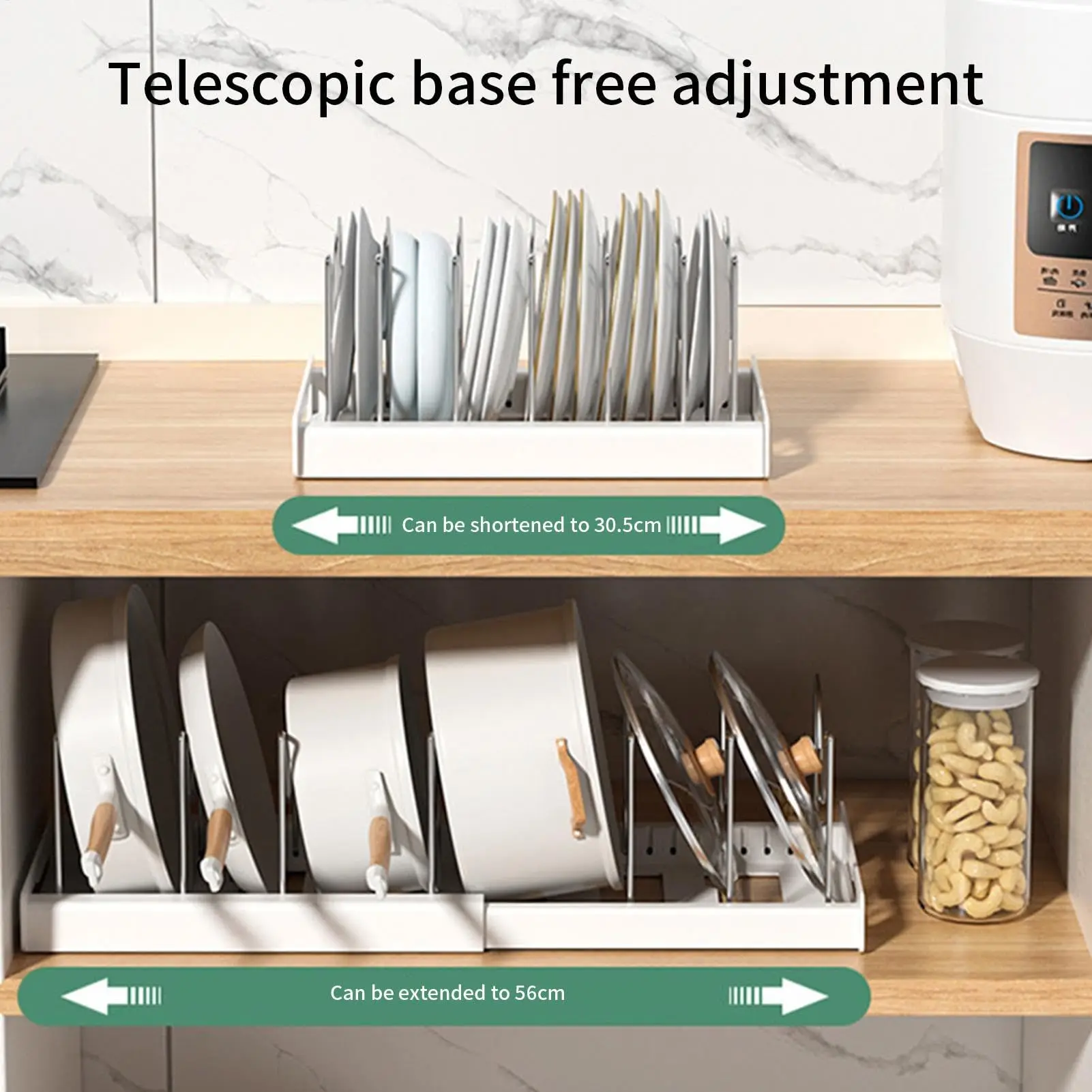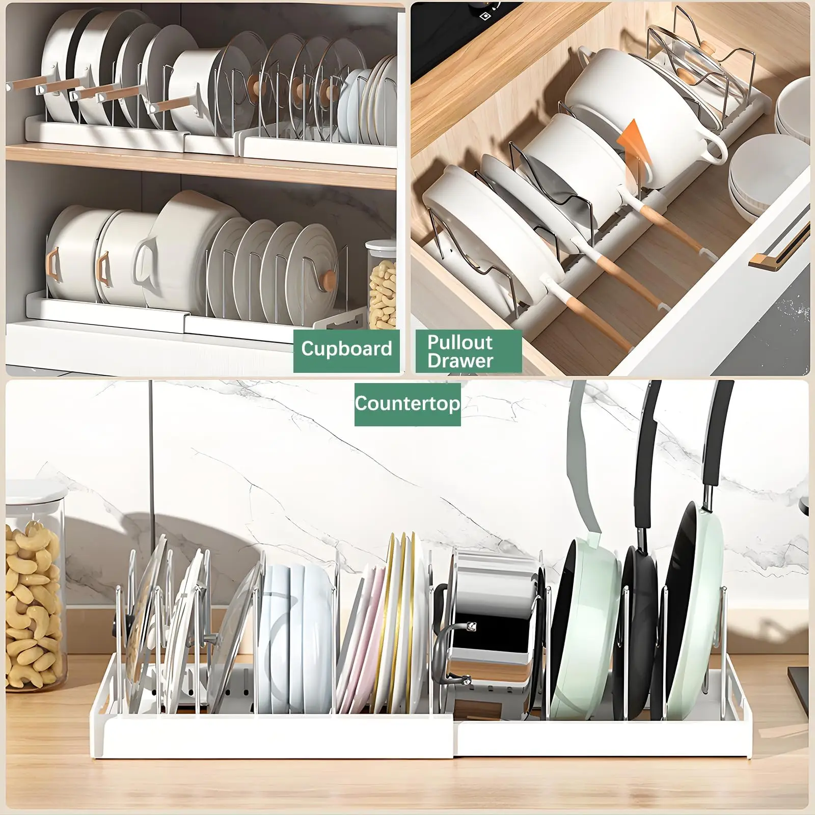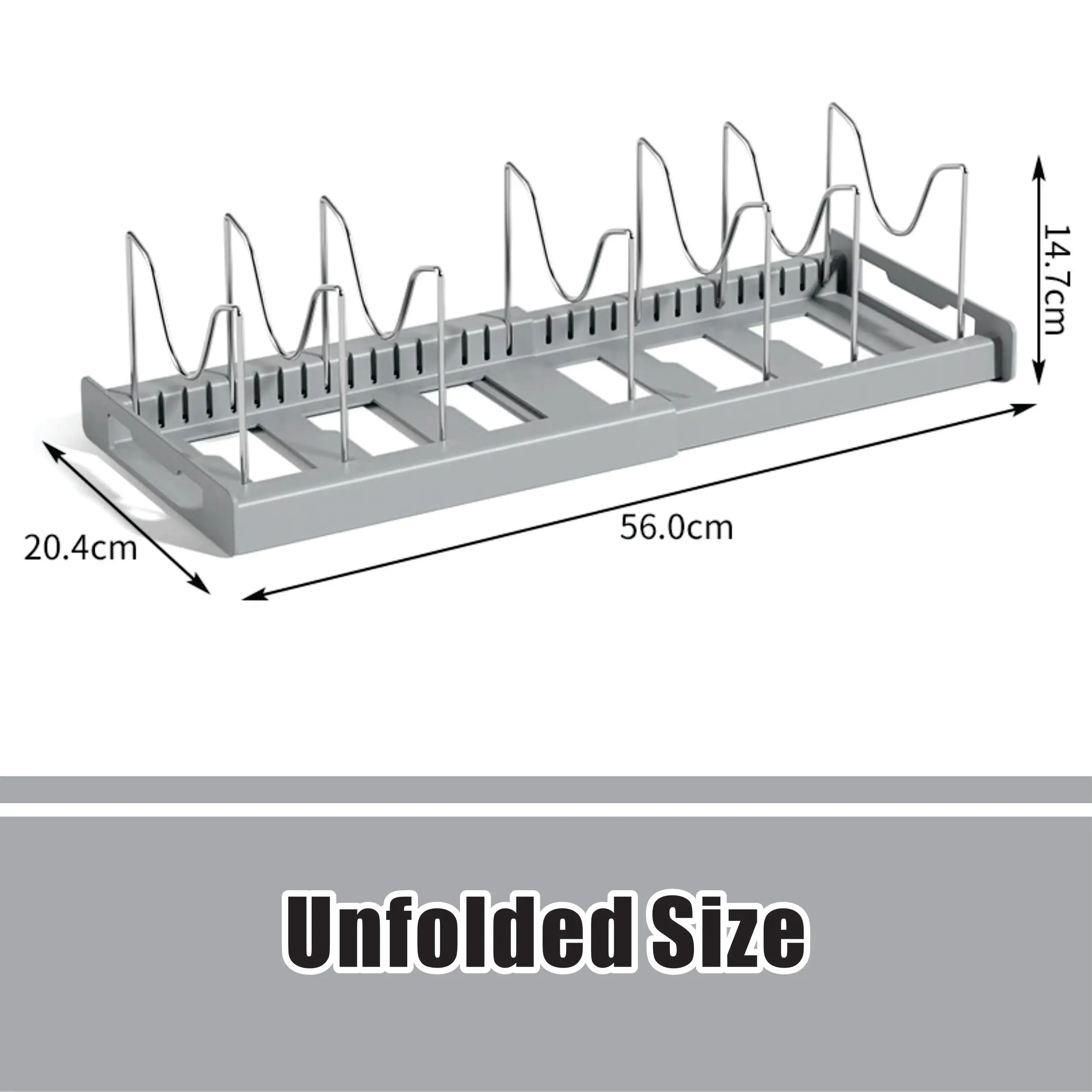 EXTENDABLE POT LID ORGANIZER – The pot organizers inside cabinet expands from 12''-22'' wide to maximize you can set this pan organizers inside cabinet to the size you want space in any cabinet