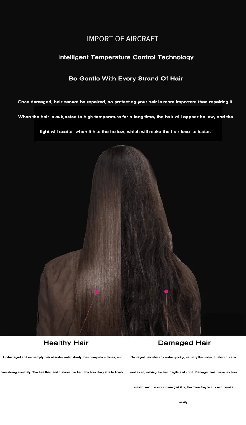 Intelligent Heat Control: Measures air temperature 40 times a second to prevent extreme heat damage and maintain your hair's natural shine.