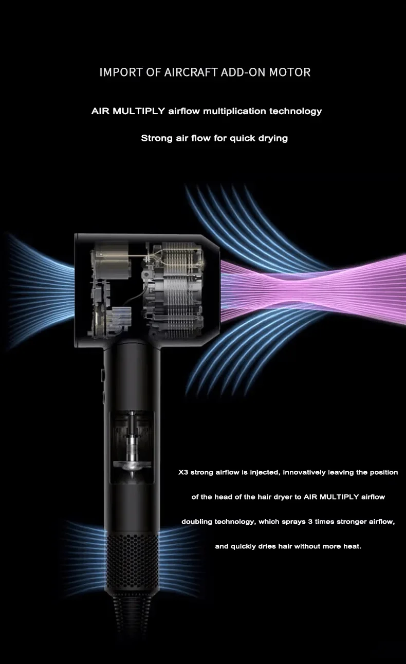 Powerful Digital Motor: High-velocity airflow ensures rapid drying for all hair types, significantly reducing drying time.