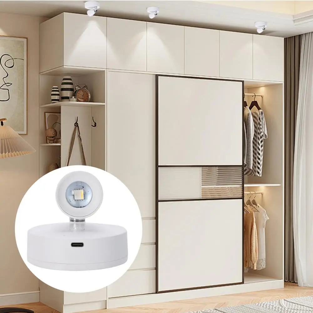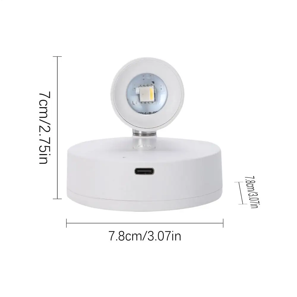 2.Install Simply: Equipped with double-sided tape, this Rechargeable LED Spotlight adheres easily on smooth surfaces and features magnetic mounting for non-smooth areas, offering two versatile installation options