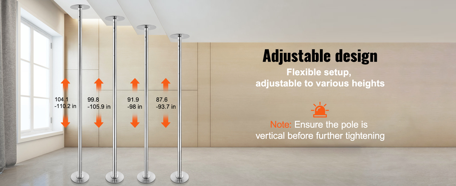 The VEVOR dancing pole is easy to assemble. It includes standard dance poles and extension rods. It allows you to adjust the pole to your desired length. Easy setup and takedown make assembly straightforward. No ceiling fixture is required. The installation manual makes the process simple. You can increase or decrease the height from 88 to 118 inches. These features make it suitable for different room heights. Its portability and easy setup are perfect for quick transport or storage. The adjustable height feature makes it versatile for various spaces.