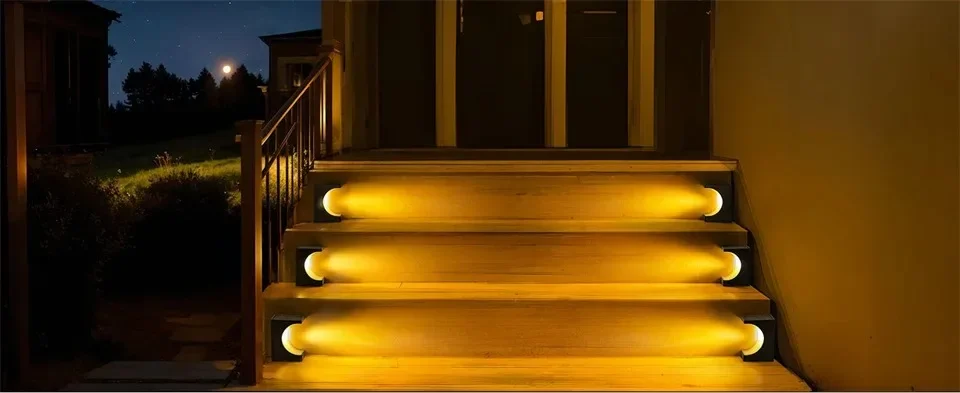 5. 【Easy Installation】Just press the power button, stick the adhesive tape (double – sided tape included), and it can be easily installed on steps or other outdoor surfaces without complex tools.